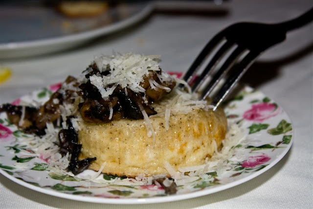 המנה הבאה בפתיחים לקחה קצת יותר זמן, סופלה פרמזן, מנה מקורית יותר של סופלה קטן עם תבשיל פטריות קטן מעל, המרקם היה נחמד, רך וגמיש, הגבינה הייתה איכותית, הפטריות נתנו תוספת עמוקה שתרמה אבל היה חסר משהו.... קצת מלח שיפר את המנה פלאים.